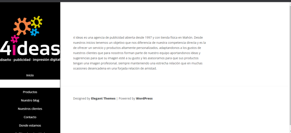 4 Ideas, una agencia de publicidad con una trayectoria desde 1997 y ubicada físicamente en Mahón, se distingue por su enfoque único desde sus inicios. Su objetivo diferenciador es proporcionar servicios y productos altamente personalizados, adaptándose a los gustos de sus clientes. Consideran a sus clientes como parte integral de su equipo, alentándolos a aportar ideas y sugerencias para garantizar que la imagen de estos esté a su gusto. Mantienen una estrecha relación que va más allá de lo profesional, a menudo desarrollando conexiones duraderas de amistad.