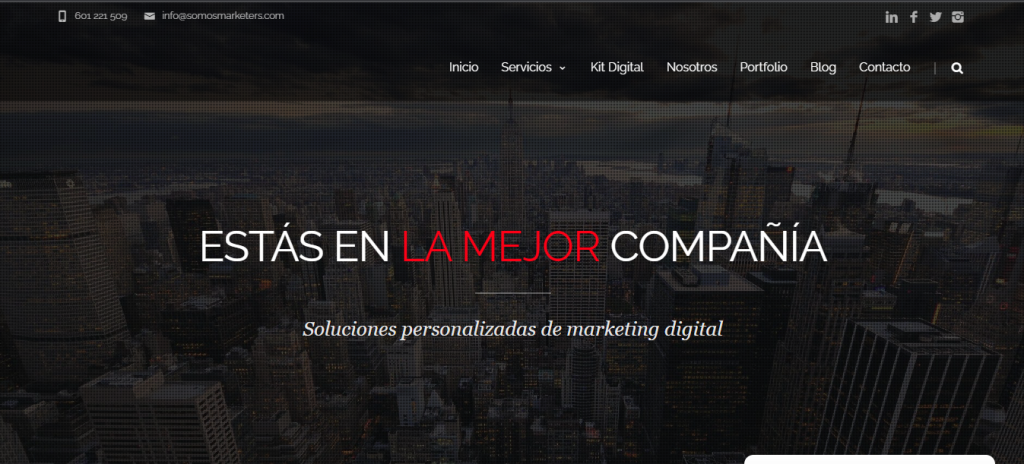 Somos Marketers se presenta como una agencia de marketing digital centrada en optimizar los resultados de diversas organizaciones a través de una planificación estratégica y la implementación de acciones digitales. Su enfoque se sustenta en tres pilares fundamentales: Estrategia Digital, Posicionamiento Web (SEO), y Publicidad Digital, abarcando desde la analítica web y la creación de sitios y tiendas online hasta el diseño y la gestión de redes sociales. Destacan por su dedicación, tratando cada proyecto con la misma atención que si fuera propio, y manteniendo una comunicación constante con las empresas clientes.