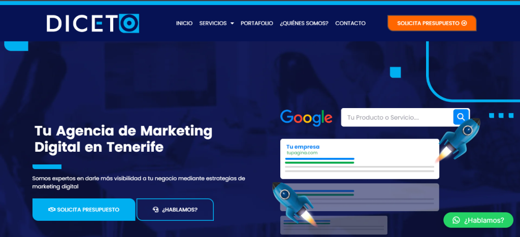 Diceto, tu agencia de marketing digital en Tenerife, se destaca por ser experta en aumentar la visibilidad y las ventas de tu negocio a través de estrategias digitales efectivas. Desde el posicionamiento web (SEO) hasta la gestión de redes sociales y publicidad en línea, ofrecen un conjunto completo de servicios para impulsar el crecimiento de tu empresa. La agencia cuenta con la confianza de numerosas empresas que han elogiado su profesionalismo y capacidad para mejorar resultados, respaldados por testimonios positivos y evaluaciones.